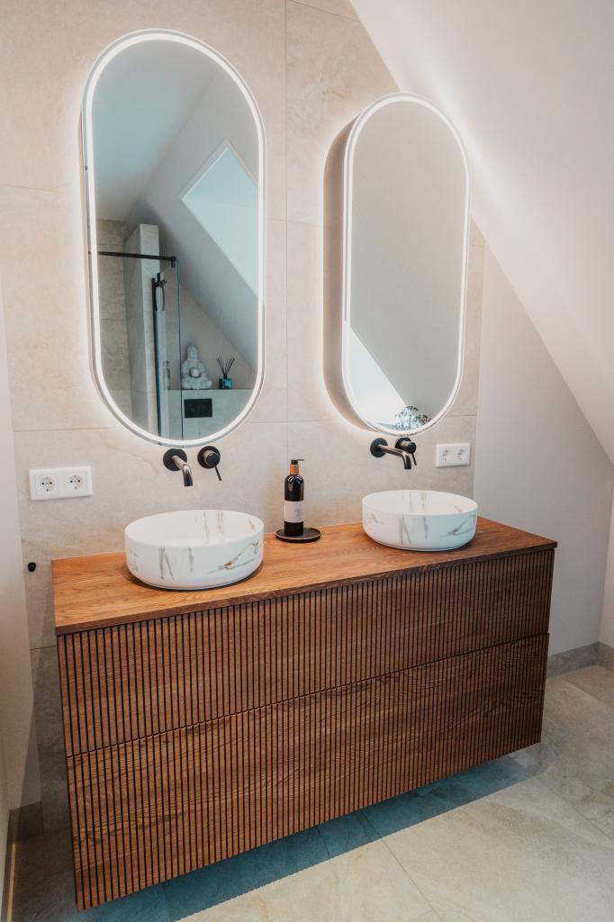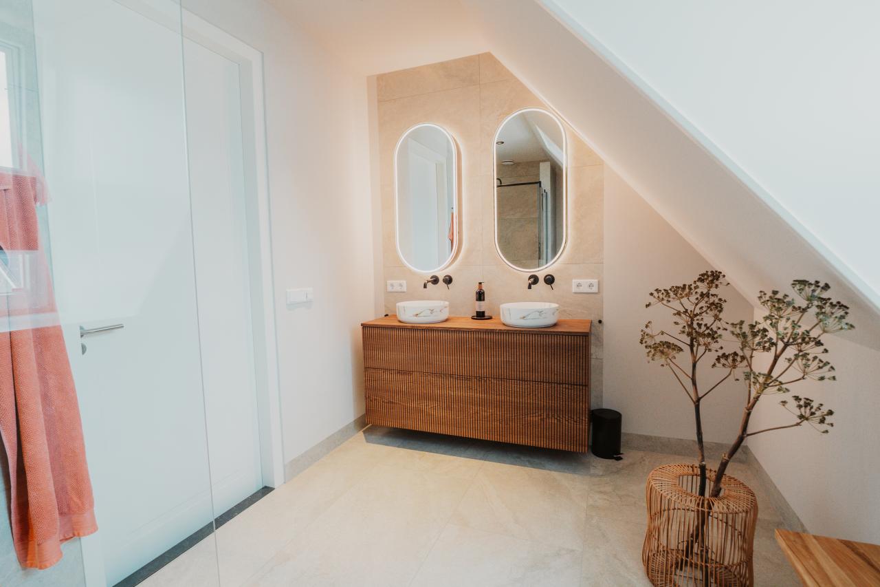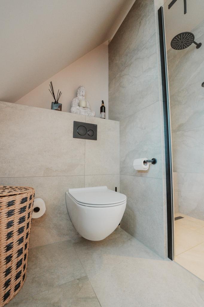 Onze tegelzetters werkten ook hier weer volgens de strenge Duitse normering, waarbij volledige waterdichte afwerking de standaard is. Zo blijft deze badkamer in Echt niet alleen stijlvol, maar ook technisch uitstekend beschermd.