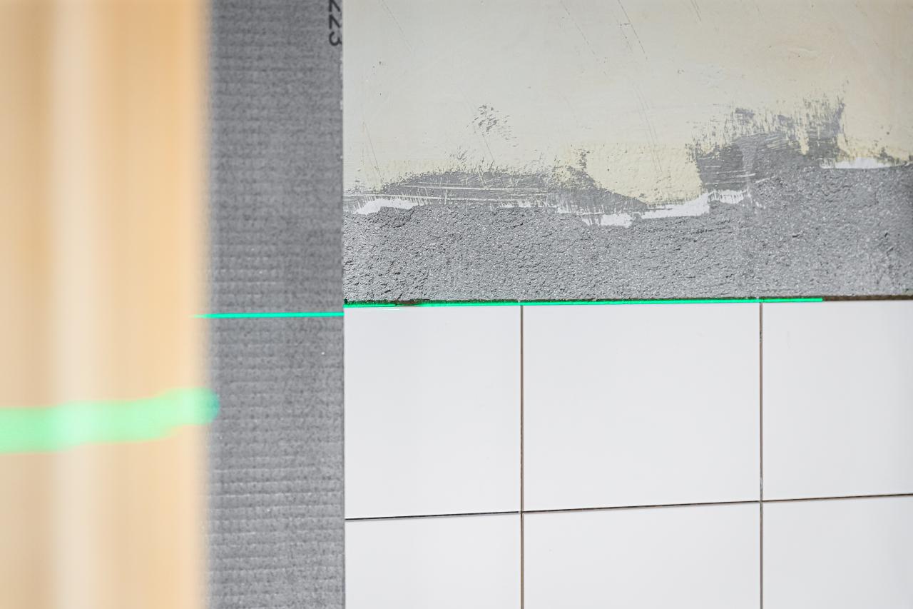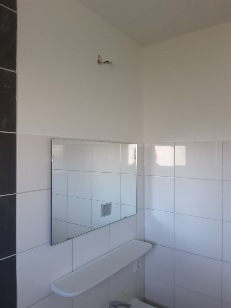 Wit stucwerk ter afronding van de sanitaire ruimtes