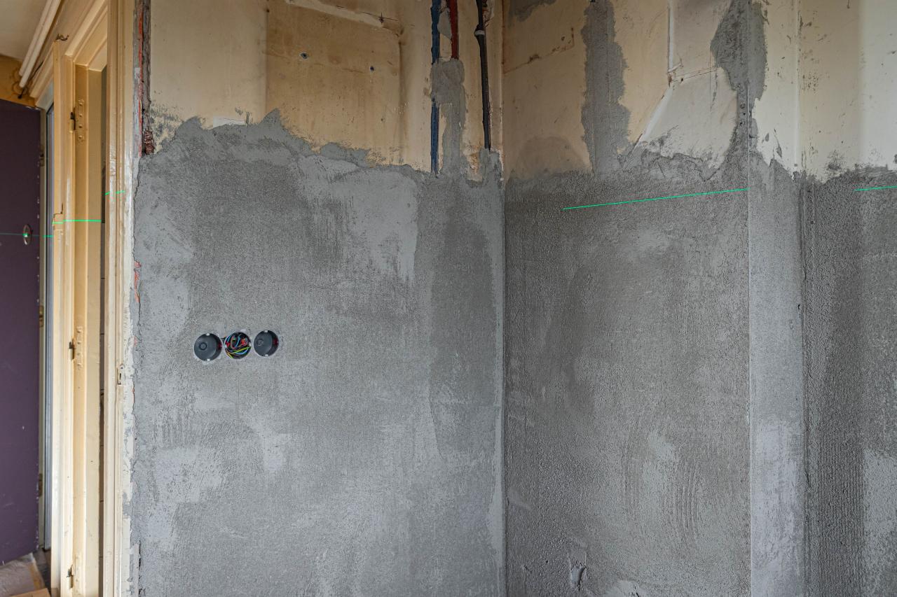 Stucwerk van wanden met cementgebonden mortel