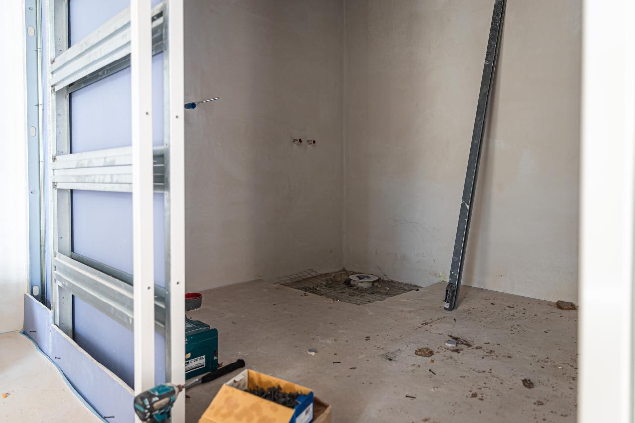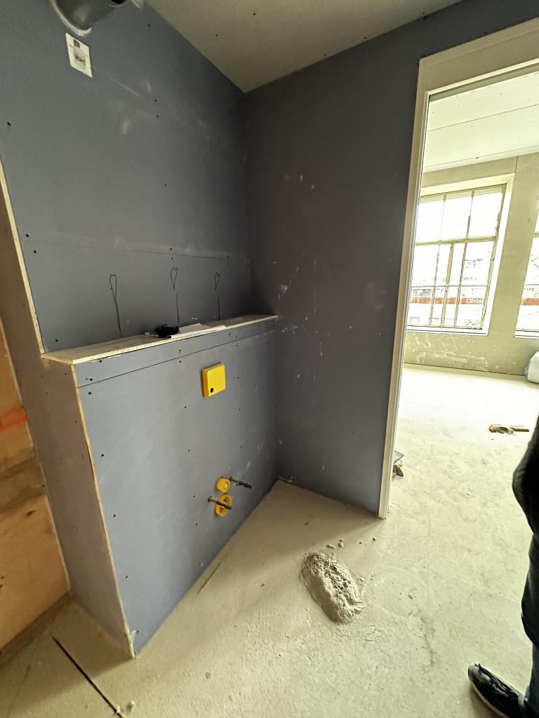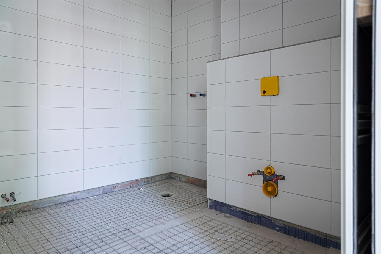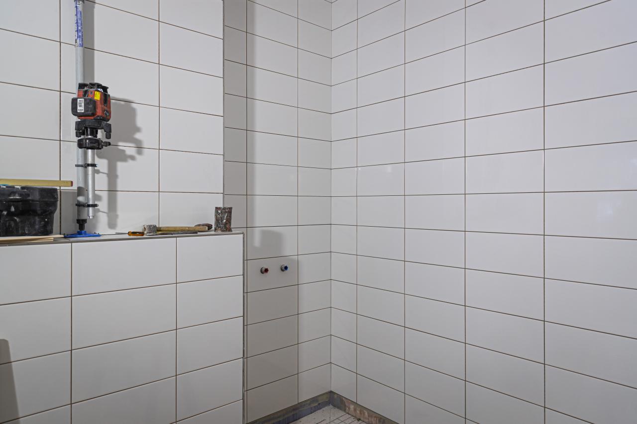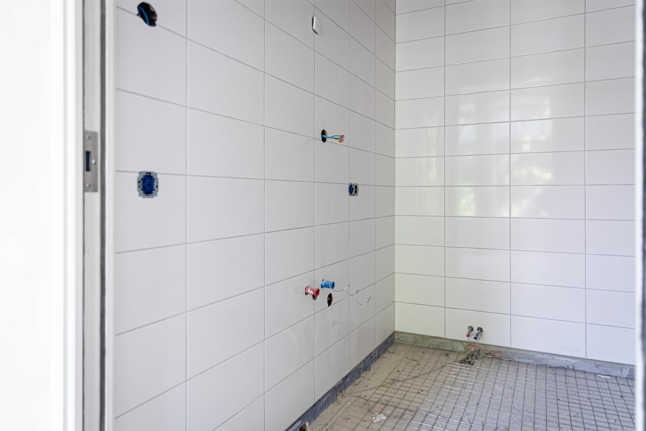 In totaal werden 30 badkamers betegeld, waarbij uitsluitend de wanden zijn voorzien van tegels; de vloeren zijn afgewerkt met pvc-zeil. De uitwendige hoeken zijn strak afgewerkt met Schlüter Quadec-profielen inclusief bijpassende hoekstukken, zodat alle hoeken slijtvast, veilig en esthetisch strak blijven.